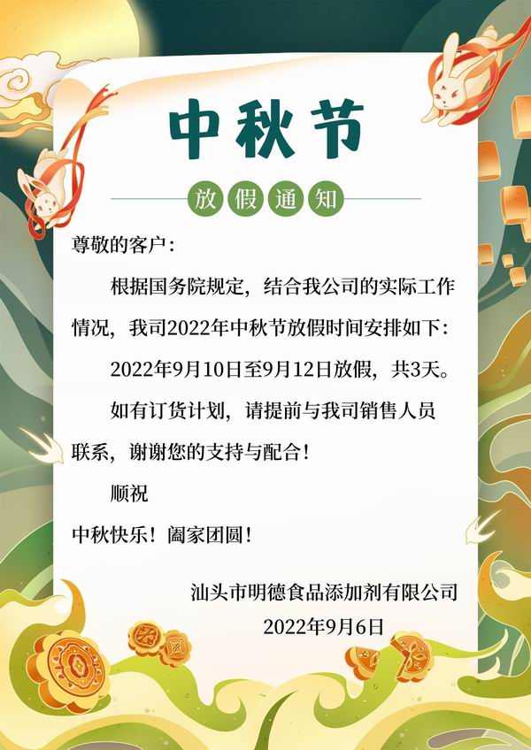 明德食品添加劑祝您中秋快樂!