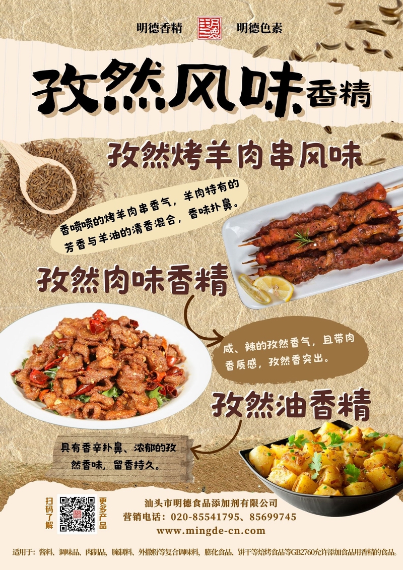 明德孜然風(fēng)味系列香精 濃郁孜然 烤香誘人汕頭市明德食品添加劑有限公司推出的孜然風(fēng)味系列香精,涵蓋孜然烤羊肉串風(fēng)味、孜然肉味香精、孜然油香精等多種調(diào)性。產(chǎn)品風(fēng)味真實(shí),香氣穩(wěn)定,適用于肉制品、調(diào)味料、休閑零食、腌制料及復(fù)合調(diào)味等B端應(yīng)用,幫助工廠快速打造具有記憶點(diǎn)的孜然風(fēng)味。