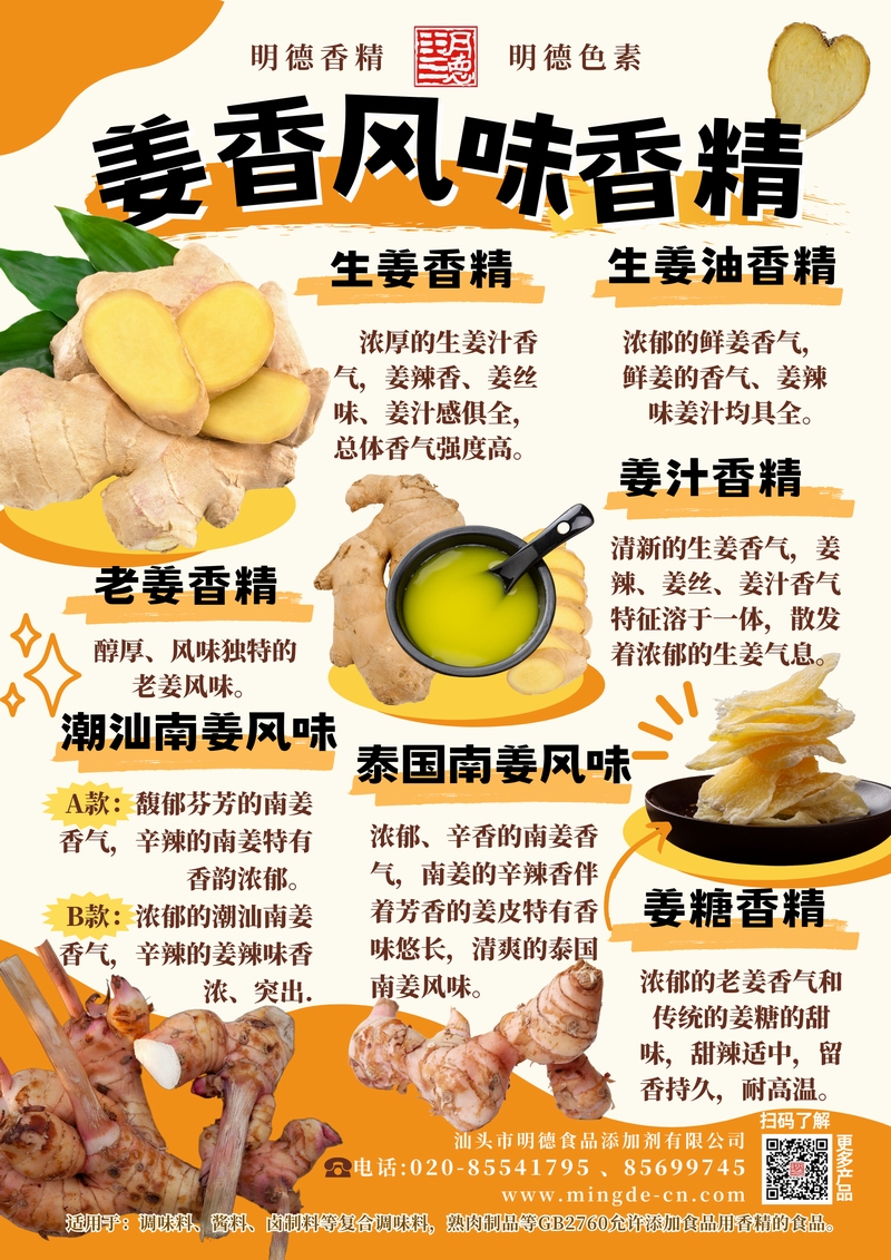 明德姜香風(fēng)味香精 姜之本味 層次盡顯汕頭市明德食品添加劑有限公司推出的姜香風(fēng)味香精系列,覆蓋生姜、姜汁、生姜油、老姜、潮汕南姜、泰國南姜等多種調(diào)性。產(chǎn)品風(fēng)味真實(shí),留香穩(wěn)定,適用于醬料、腌制料、調(diào)理食品、肉制品、風(fēng)味飲品、糖果、烘焙及外撒粉等B端應(yīng)用,幫助工廠穩(wěn)定呈現(xiàn)鮮明的姜辣香與去腥提鮮效果。